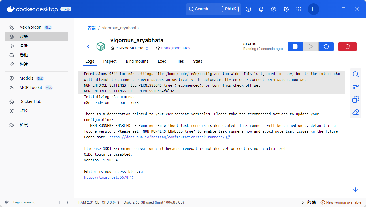 这一步的用途是,将 n8n 中用于存储文件、数据、凭证等的目录,映射到 Docker 之外。因为 Docker 是一种数据-程序分离的部署方案,如果你不这么做,下次快捷升级的时候,你 n8n 里的数据就会被清空。