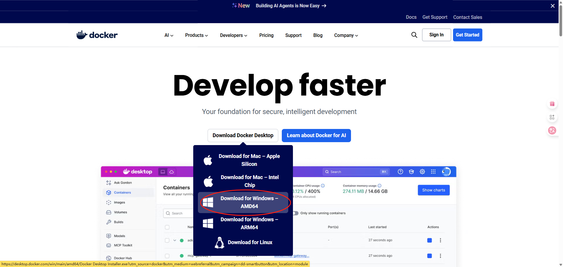 访问 Docker 官方网站,选择 Download Docker Desktop: